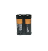 A 2CR5 sized battery pack contains 6v of power and uses lithium chemistry. Because of the shape, it is primary installed in the right hand grip area of cameras. It is most commonly used in Canon EOS line of cameras, but is also used in many digital cameras.