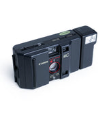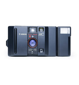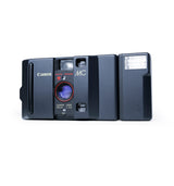 The Canon MC is a sleek 35mm point & shoot camera that blends minimalist design with reliable performance. Paired with the detachable MC-S flash, it's perfect for those who appreciate clean aesthetics and effortless film shooting.